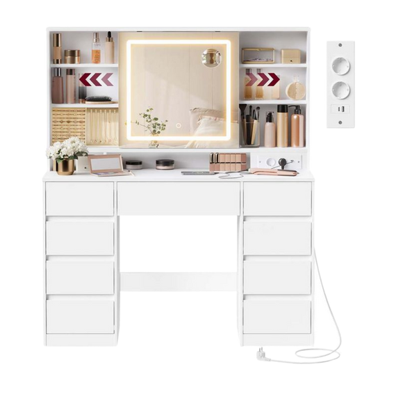 Jouw make-uptafel met 9 lades, LED-verlichting en 10x vergrotende spiegel.